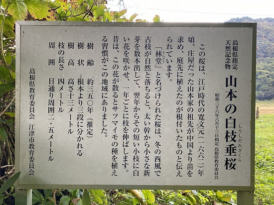 目通り幹周2.5m、高さ13m。 1961(昭和36)年6月13日、県の天然記念物に指定。 |