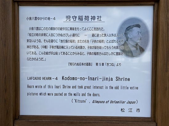 | 概要 | 松江城築城以前から宇賀山(城山)に鎮座していたが、1607(慶長12)年、松江城築城に伴って移動、1742(寛保2)年、現在地に鎮座した。 かつては、子や孫の成長・安全を祈願した祈願文・絵が、社殿の前面いっぱいに貼られていた。小泉八雲も興味をもってよく訪れ、『知られぬ日本の面影』で紹介している。 |
