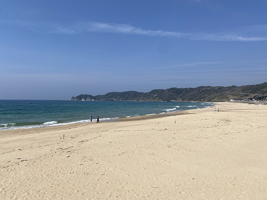 | 概要 | 日本有数の鳴き砂浜。砂浜は、円磨された石英砂で構成されており、歩くと砂粒子が摩擦して音を発する。砂浜のほぼ全域に鳴り砂が分布しており、良好に維持されている。 2017(平成29)年10月13日、国の天然記念物に指定。日本遺産「石見の火山が伝える悠久の歴史~”縄文の森” ”銀の山”と出逢える旅へ~」の構成文化財。 |