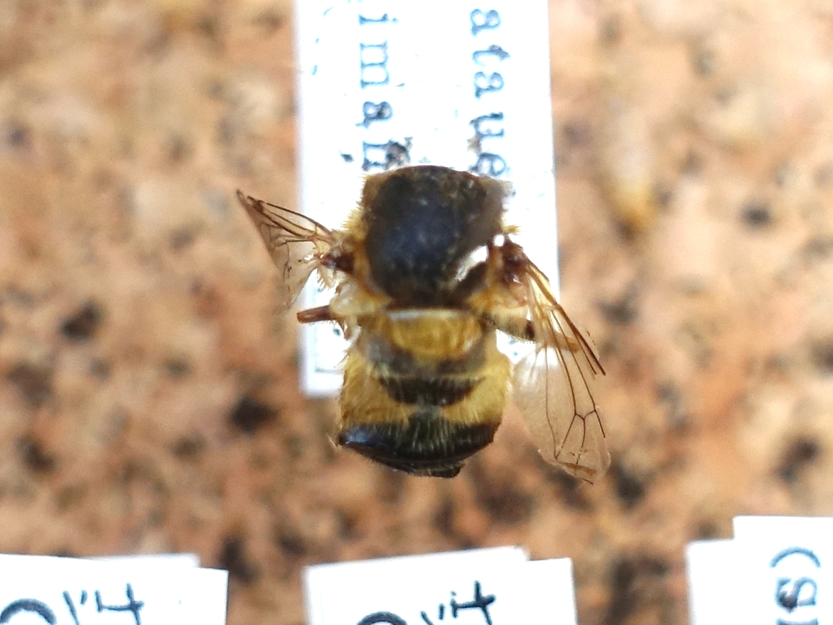 ハエ目ハナアブ科ハナアブ亜科 ラベルの採取地に「ナシ」の表記あり。 平成23年度、生物資源科学部から島根大学ミュージアム(現:島根大学総合博物館)に移管。 |