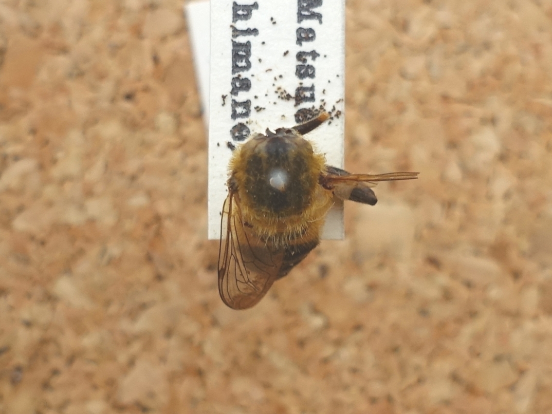 ハエ目ハナアブ科ハナアブ亜科 ラベルの採取地に「ナシ」の表記あり。 平成23年度、生物資源科学部から島根大学ミュージアム(現:島根大学総合博物館)に移管。 |