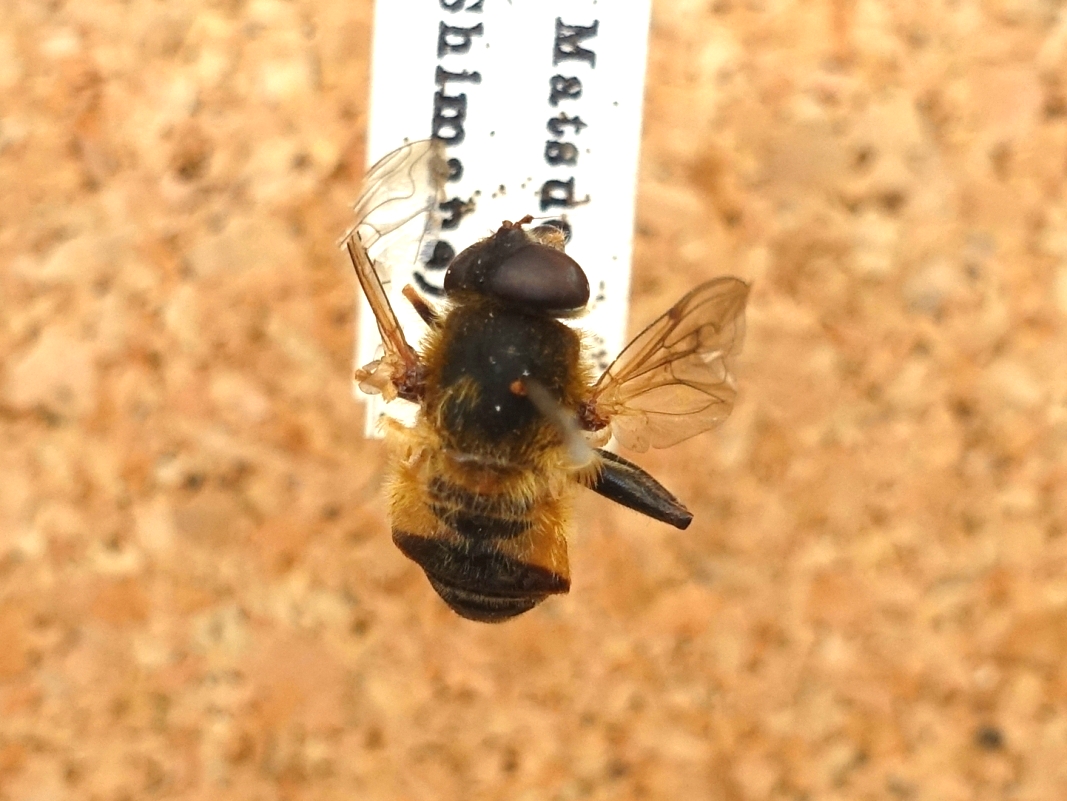 ハエ目ハナアブ科ハナアブ亜科 ラベルの採取地に「ナシ」の表記あり。 平成23年度、生物資源科学部から島根大学ミュージアム(現:島根大学総合博物館)に移管。 |