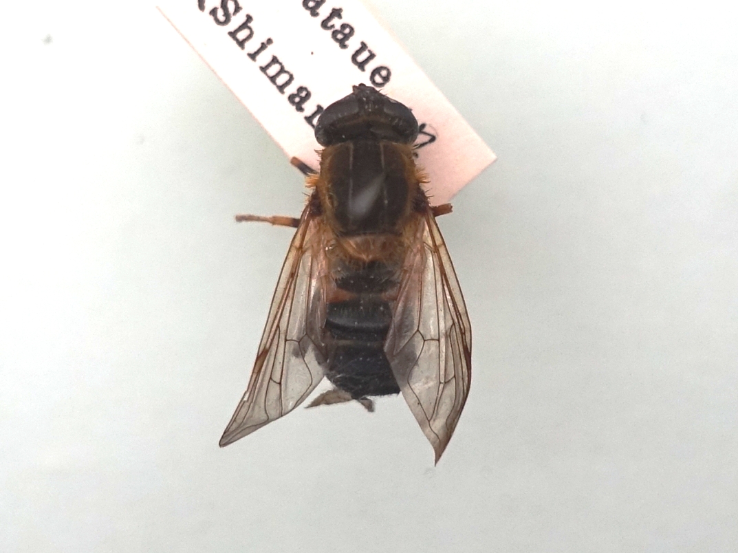ハエ目ハナアブ科ハナアブ亜科 ラベルの採取地に「ナシ」の表記あり。 平成23年度、生物資源科学部から島根大学ミュージアム(現:島根大学総合博物館)に移管。 |